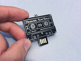 - Mini USB drive attached to a custom cassette-shaped circuit board